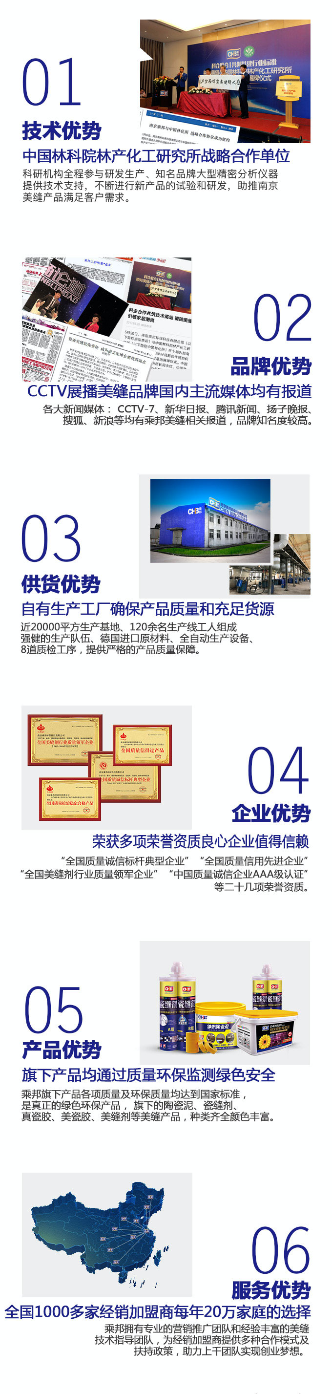 南京乘邦環(huán)保科技有限公司成立于2005年,是集南京瓷磚美縫南京美縫施工、美縫劑產(chǎn)品的研發(fā)與銷&售等產(chǎn)業(yè)的南京瓷磚美縫公司。目前公司主打美縫產(chǎn)品為國內(nèi)推出的傳統(tǒng)美縫劑升級(jí)產(chǎn)品:乘邦納米陶瓷泥、水性環(huán)氧彩砂,天然砂質(zhì)顏料,化妝品般安全無污染。乘邦陶瓷泥顏色豐富,大大提升裝飾效果,打造魔幻家居,讓家也可以炫酷起來。它綠色環(huán)保防霉防污,堅(jiān)硬如瓷細(xì)膩光潔,不僅做到瓷磚縫隙“不變黑”,而且在為每一個(gè)家庭健康美麗而努力,這是乘邦公司的最高準(zhǔn)則,也是乘邦人為之努力奮斗的目標(biāo),以此目標(biāo)乘邦本著"誠信、合作、專業(yè)、超越"的理念,詮釋優(yōu)質(zhì)服務(wù),演繹品質(zhì)生活。同時(shí)公司擁有一支管理完善、經(jīng)驗(yàn)豐富的專業(yè)美縫施工隊(duì)伍。在南京瓷磚美縫價(jià)格方面也有很大的優(yōu)勢(shì),每年為南京近萬家庭提供美縫服務(wù),其自主研發(fā)的乘邦牌產(chǎn)品在10余省市已有近千個(gè)代理商,在全國范圍內(nèi)享有很高的知名度。
